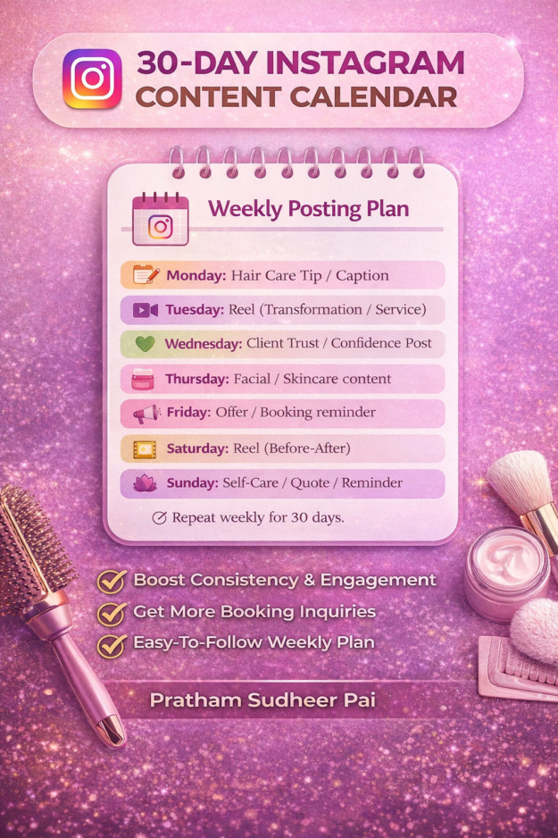 Many salon owners struggle with what to post consistently on Instagram. Without a clear plan, it becomes difficult to stay active and attract new clients.
